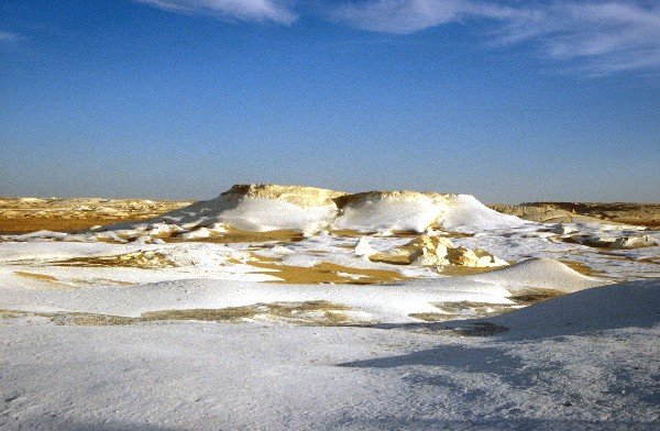 A Fehér Sivatag Egyiptomban, a Nyugati Sivatagban található: a Baharia oázistól 160, a Farafra oázistól 40 km-re. 2002 óta már egy nemzeti park része, ahol fantaszikus formákba "faragták" a homok- és szélviharok, a kristályos köveket. A Faragfra oázistól nem messze található például a képen is látható formáció. De található itt gombára emlékeztető alak is, amit egyébként az egyiptomiak sivatagi fagylaltnak neveznek. A park területe 3010 km2-t tesz ki. Déli részén a mészkőrétegekben a földtörténeti korok állatai is jól láthatók, közöttük például cápafog.